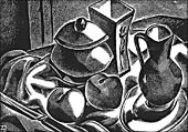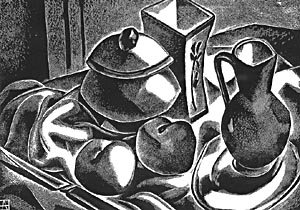 In the inter-war period, several teachers of Greek engraving modified their artistic output and laid the foundations for its development, marking the end of its close dependence on painting. Among them are Yannis Kephallinos, professor at the School of Fine Arts (1932), Dimitris Galanis, Angelos Theodoropoulos and Lykourgos Kogevinas, mainly landscapers, and Giorgos Oikonomidis, who conveyed the spirit of the concepts of Expressionism. Finally there were Dimitris Giannoukakis and Efthimis Papadimitriou, who stressed realistic elements in their initial phase. All these artists developed many and various techniques such as lithography, woodcut and copper-plate engraving. Some of them,
