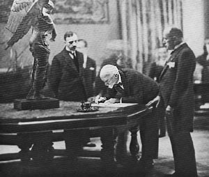 On 23 September 1928 a bilateral "friendship, reconciliation and judicial settlement" treaty was signed in Rome between Greece and Italy. Eleftherios Venizelos signs the Greek-Italian treaty. To the right, standing, is the Italian prime-minister Mussolini, while to the left is D. Kaklamanos. Athens, Photographic Archive of The Hellenic Literary and Historical Archive © The Hellenic Literary and Historical Archive |