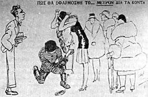 Strikes and labour mobilizations of every kind characterized the first undisturbed period of the democratic constitution (until 1926). The dictatorial period of governorship under Theodoros Pangalos (1925-26) would be an exception. The latter, sometimes through impressive acts (hanging those who embezzled public money), sometimes through absurd measures (restricting skirt lengths), endeavoured to turn public opinion in his favour. Despite his view 'I gain my strength from the confidence the army has in my presence', the personal authority he had imposed did not thrive. Economic problems became worse and popular discontent grew, resulting in his downfall.