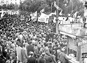 of Athens a swelling sea of people that grows bigger and bigger, wider