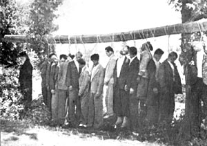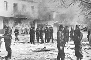 The Fascist occupation regime established a climate of terror to break the resistance and the morale of the Greek people. The prospect of the death penalty for the slightest act that deviated from the commands of the occupation administration (such as listening to radio), the daily execution of hostages and the mass eliminations of the inhabitants of whole villages as reprisals for sabotage at the expense of the occupation army, the executions on the spot of citizens thought by Greek collaborators to have taken part in the so-called resistance 'blockades', imprisonment and torture, and the deportation of Greeks to German concentration camps, constituted the Germans' suppression mechanism towards any act of resistance. This terrorism on the part of the Germans was assisted by the so-called 'Security Batallions' which consisted of