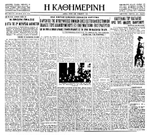 The progress of the Battle of Greece through the front page titles of the newspaper of the time, KATHIMERINI: